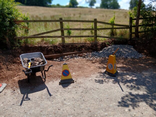What we require help with initially are the groundworks to provide a gentle gradient into and out of the field for vehicles and people, work to provide a flat, wide area suitable for parking (crushed stone will eventually be used for surfacing) and associated landscaping. You don’t need to be 6ft and built like a builder to help, there will be tasks available for people of all ages & abilities.
